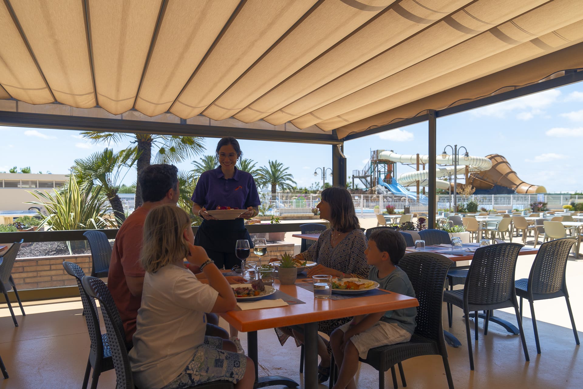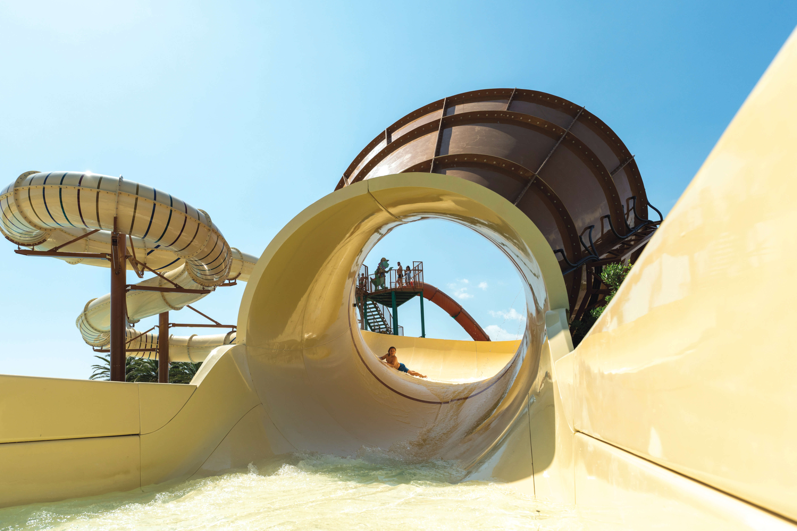 Ce camping vous propose des bungalows entièrement équipés, des mobil-homes confortables et un emplacement exclusif de 180 m² avec sanitaires individuels. Ainsi qu’un espace aquatique avec 4 piscines et 4 toboggans.